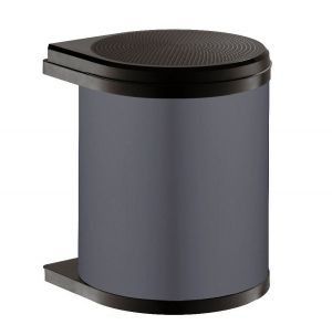 Встраиваемое Ведро для Мусора 15 литров, цилиндрической формы со стационарной крышкой, основной корпус из нержавеющей стали, внутреннее ведро 15л, крышка и механизм открывания из черного пластика