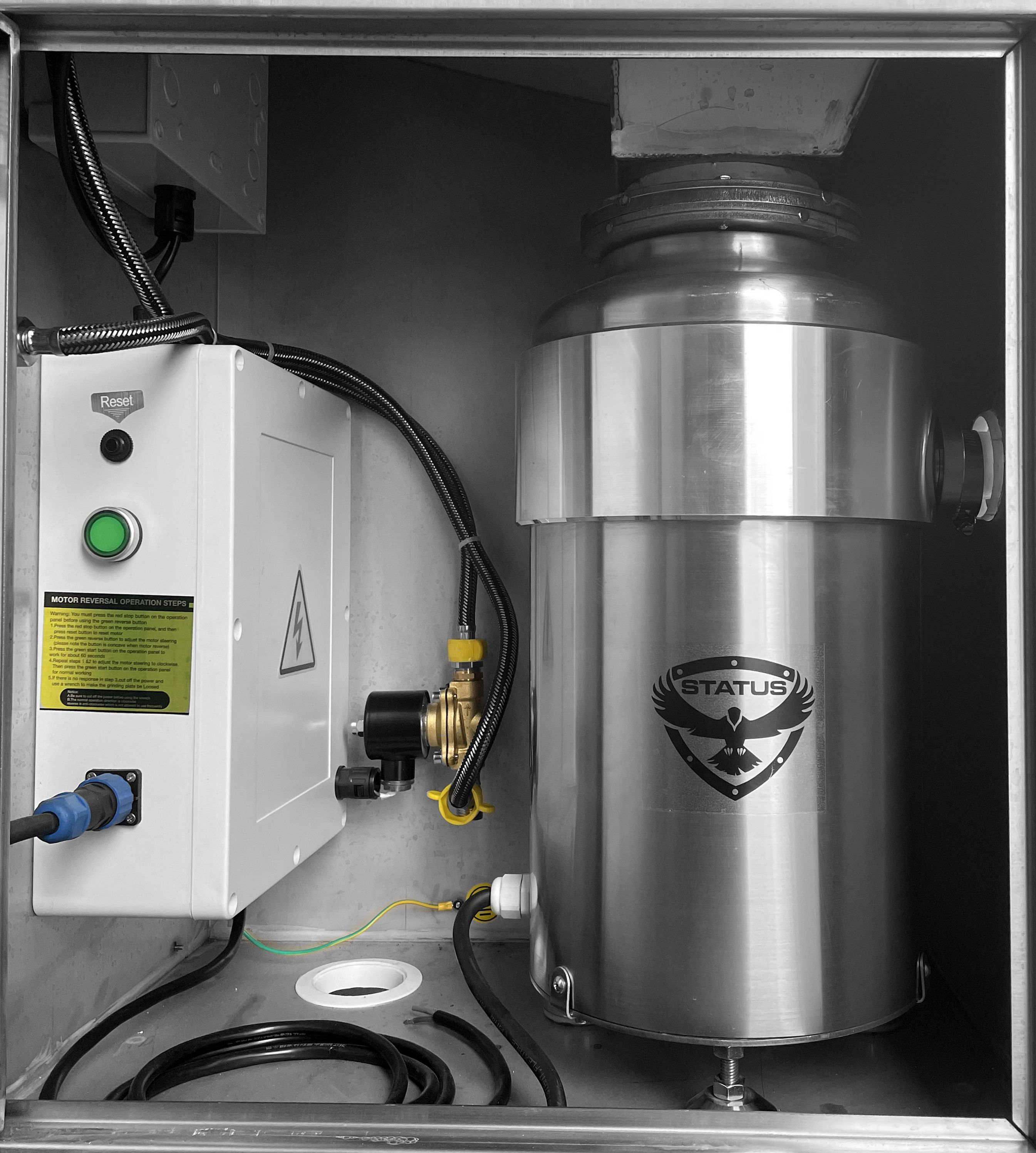 Измельчитель пищевых отходов STATUS HD 1000 представляет собой электрический прибор, который устанавливается непосредственно на кухонную мойку вместо штатной сливной арматуры и подсоединяется через сливное отверстие к системе канализации.